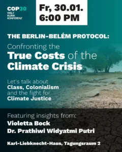 The Berlin-Belém Protocol is our response: a space to link climate justice with anti-capitalist, anti-colonial, and anti-fascist struggles. Join us to help write the real protocol for our future!